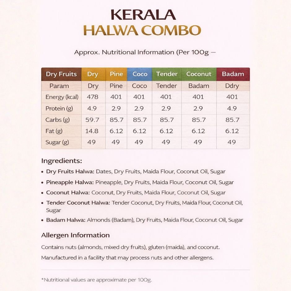 Whether it’s for a festive occasion, family get-together, or simply to satisfy your sweet tooth, this combo offers something for everyone. it’s the ideal pack to share with friends, gift to loved ones, or stock up for your own sweet indulgence. Experience the tradition of Kerala’s finest halwas in one combo — a true celebration of flavor, texture, and happiness!